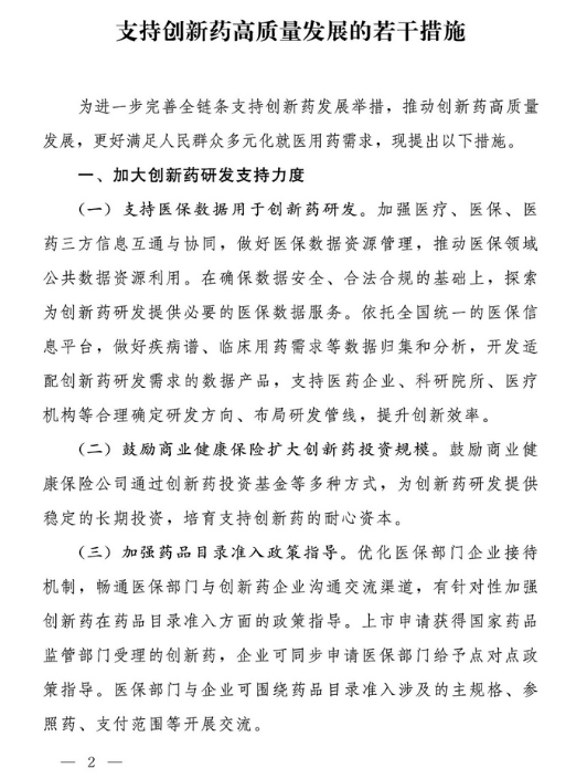 以下為《支持創(chuàng)新藥高質(zhì)量發(fā)展的若干措施》全文: