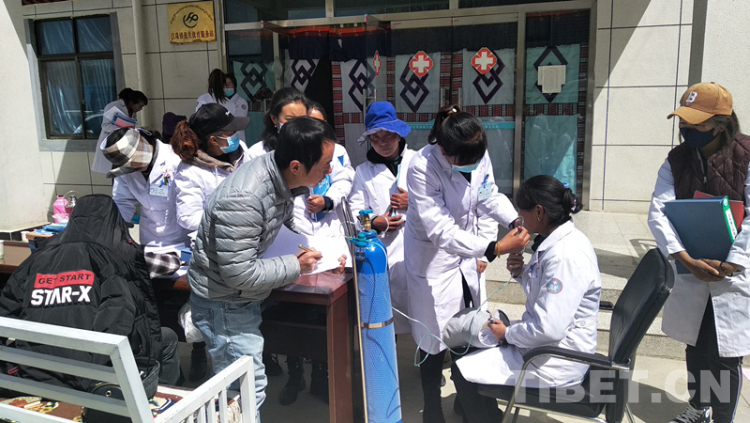 武漢市金銀潭醫(yī)院援藏隊(duì)在山南市率先開(kāi)展基層醫(yī)療績(jī)效考核,圖為2019年4月4日隊(duì)員為村醫(yī)進(jìn)行吸氧等醫(yī)療基本操作的培訓(xùn)與考試 攝影:袁洋