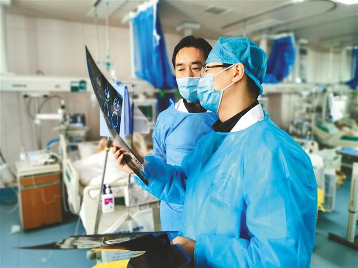 圖為援藏專家、日喀則市人民醫(yī)院神經(jīng)外科主任高超(左一)同神經(jīng)外科副主任帕珠(左二)在探討病人術(shù)后康復(fù)情況。記者 張斌 攝