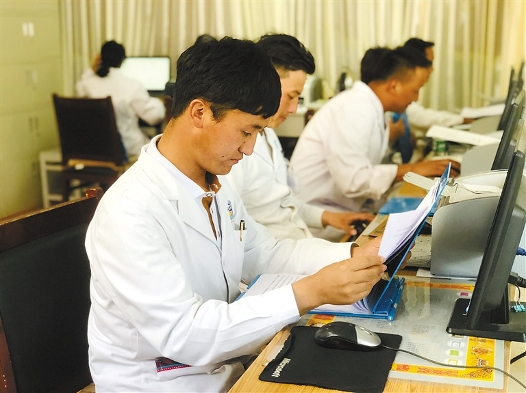 “次仁啦,今天感覺怎么樣?有沒有哪里不舒服?”病房中,在給第一天進行藏藥浴治療的病人次仁做完常規(guī)檢查后,仁增確定了病人第二天的治療方案。