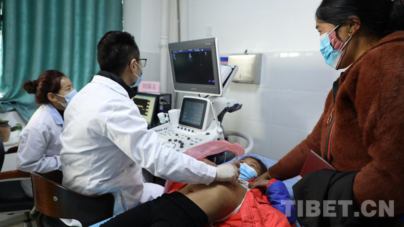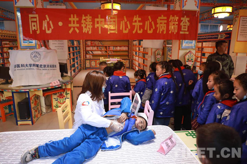 北京天壇醫(yī)院超聲科張萌在為當(dāng)?shù)貙W(xué)生進(jìn)行超聲篩查