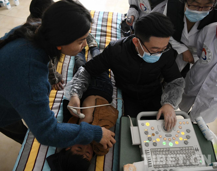 醫(yī)療隊和志愿者們不顧舟車勞頓和高原反應(yīng)的不適,認(rèn)真地對每一位前來篩查的小朋友進(jìn)行詳細(xì)的詢問和認(rèn)真的檢查。對于有疑似癥狀的患者則現(xiàn)場利用從北京帶來的先進(jìn)設(shè)備進(jìn)行彩超診斷,并耐心和每一位患者家屬進(jìn)行交流和講解,在每個工作細(xì)節(jié)上精益求精。