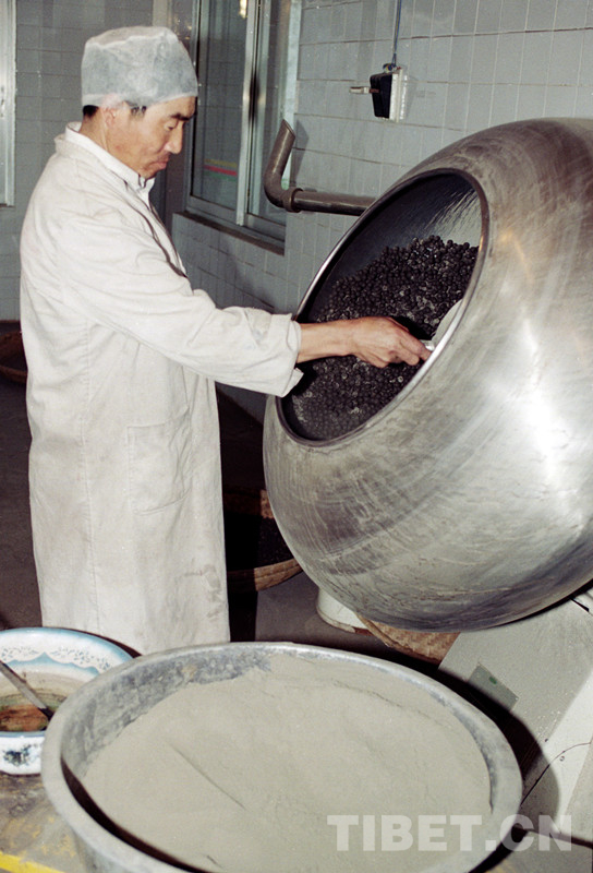 這是西藏昌都地區(qū)利民藏藥廠工人正在生產(chǎn)藏藥。該藏藥廠曾被人事部和國家醫(yī)藥管理局授予全國醫(yī)藥系統(tǒng)先進(jìn)單位稱號(唐召明1998年攝)