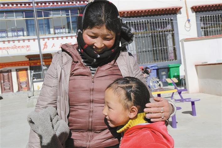 剛拆完石膏的髖關節(jié)脫位患兒索朗卓嘎高興地依偎在母親懷里?!∮浾?黃志武 攝