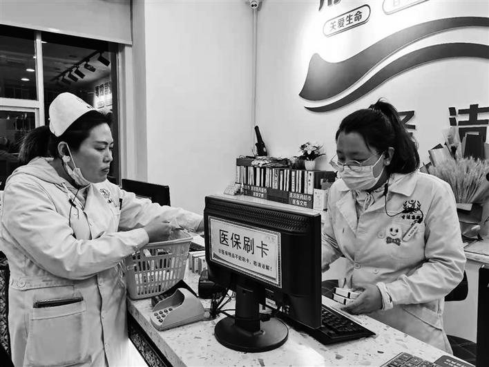 拉薩市某藥店工作人員幫市民刷卡結(jié)賬。圖/記者 王媛