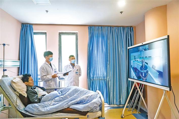 圖為察隅、深圳兩地醫(yī)生在病房開展遠程會診。記者 益西加措 攝