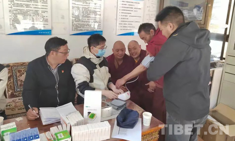 現(xiàn)場(chǎng)志愿服務(wù)隊(duì)員們?yōu)樯娐?tīng)診、量血壓、開(kāi)處方、提建議,并幫助他們預(yù)約檢查,聯(lián)系醫(yī)保局詳細(xì)解答醫(yī)保報(bào)銷(xiāo)問(wèn)題等。期間,隊(duì)員們還教會(huì)了每一位僧人使用電子血壓計(jì)監(jiān)測(cè)血壓,并向僧眾征集就診看病、醫(yī)療改革建議12條。義診結(jié)束時(shí),僧眾向志愿服務(wù)隊(duì)員們獻(xiàn)上哈達(dá)以示感謝。