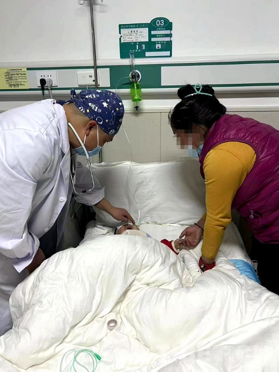 手術(shù)順利結(jié)束,看著醫(yī)護(hù)人員把才巴央措從手術(shù)室推出來(lái),母親卓巴雙手合十并不停對(duì)著醫(yī)護(hù)人員說(shuō) “噶真切”“噶真切”,醫(yī)護(hù)人員也面帶欣慰的微笑,用一兩句簡(jiǎn)單的藏語(yǔ)回應(yīng)著卓巴,看著病床上熟睡的才巴央措,卓巴輕撫孩子臉頰哽咽落淚。