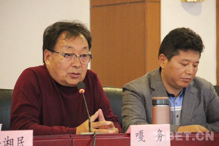圖為西藏藏醫(yī)藥大學(xué)嘎務(wù)教授(左)發(fā)言 攝影:李元梅