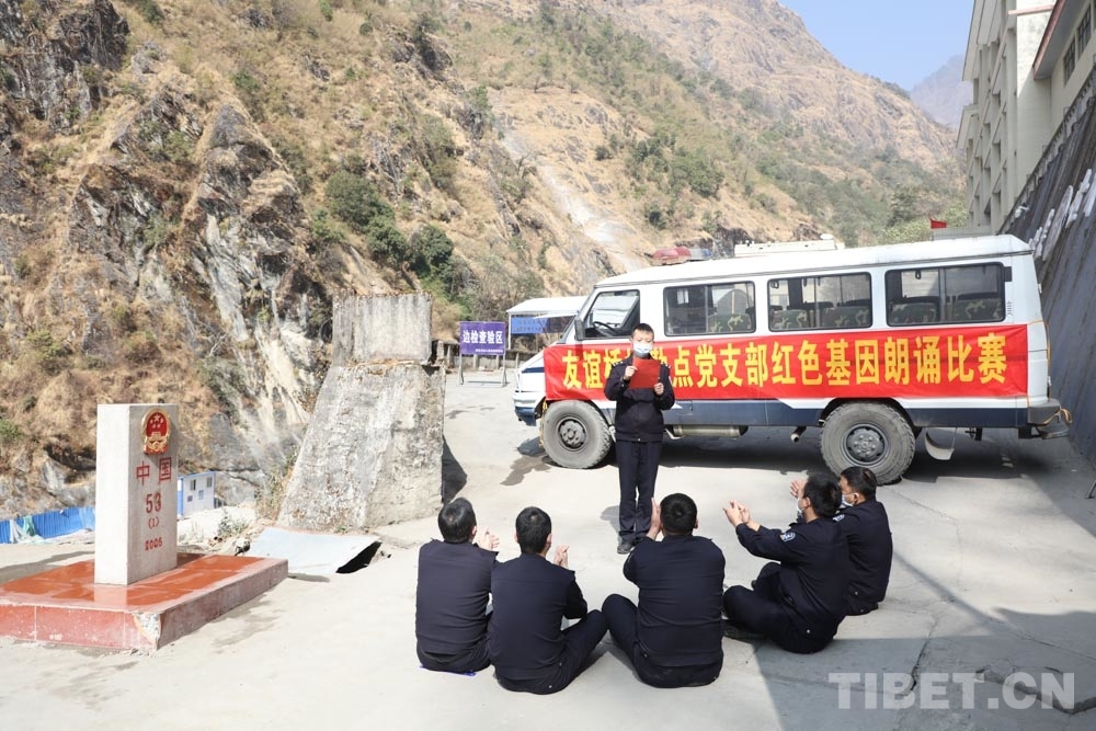 中國西藏網(wǎng)訊 為提升完善四強黨支部建設(shè),豐富一線執(zhí)勤民警文化生活,1月27日,西藏自治區(qū)聶拉木出入境邊防檢查站友誼橋執(zhí)勤點在53號界碑旁舉行紅色基因朗誦比賽,為中國共產(chǎn)黨百年華誕獻(xiàn)禮。