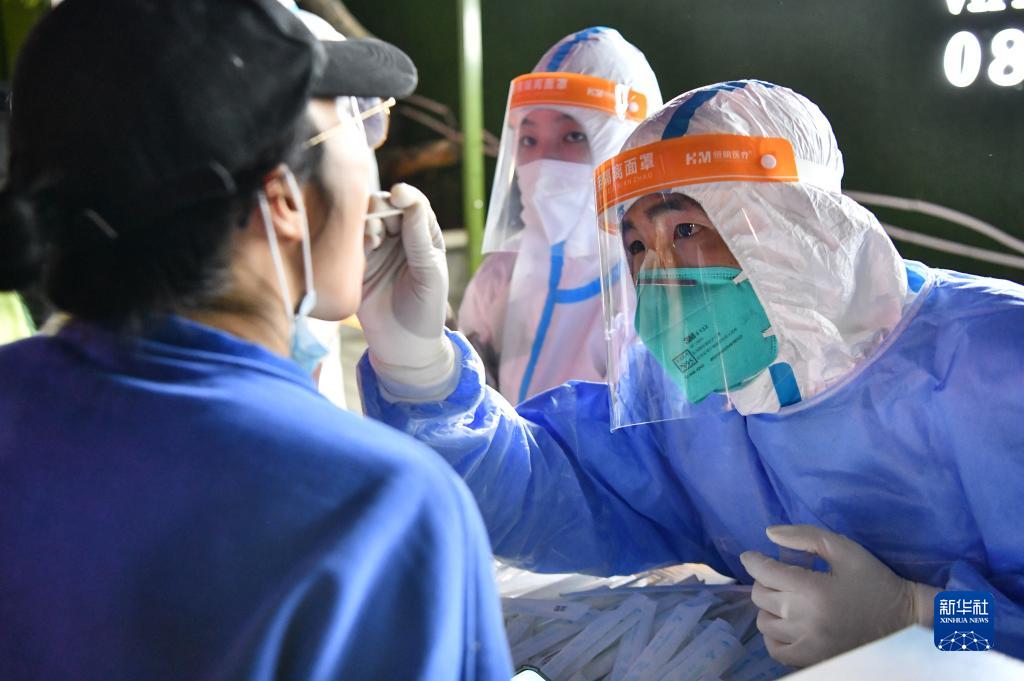 8月10日上午,居民在拉薩市某小區(qū)核酸采樣點(diǎn)接受核酸采樣。新華社記者 晉美多吉 攝
