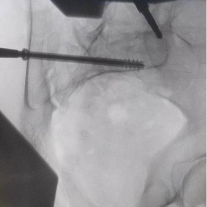 圖為透視下見置入的骶髂螺釘,位置、長度精準(zhǔn),無絲毫偏差