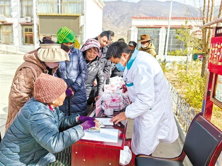 近日,拉薩市堆龍德慶區(qū)婦聯(lián)在包村點古榮鎮(zhèn)加入村開展送醫(yī)送藥送健康活動,邀請西藏雄巴拉曲神水藏藥有限公司醫(yī)務人員為群眾進行義診。 圖為義診現(xiàn)場。記者 拉巴桑姆 攝