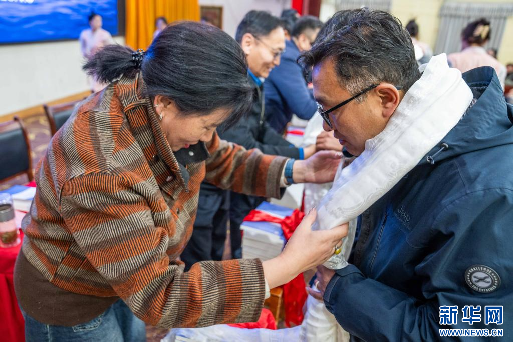 4月8日,藏醫(yī)藥研究生系列教材發(fā)布儀式現(xiàn)場。新華社記者 旦增尼瑪曲珠 攝
