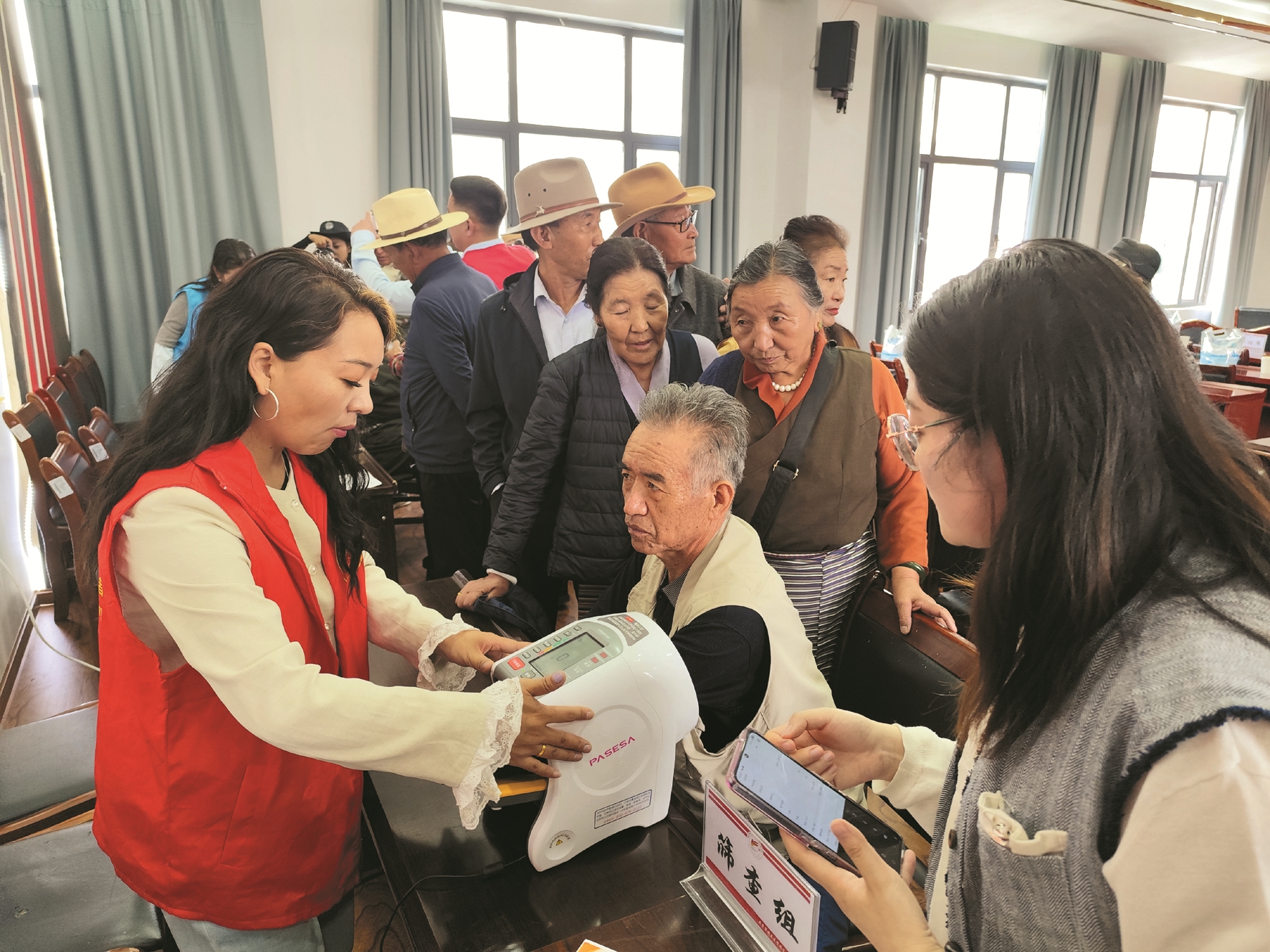 圖為志愿者為老人們進(jìn)行動(dòng)脈硬化篩查。拉薩融媒記者 齊永昌 攝
