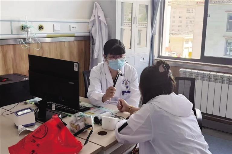 樊春秋為患者診斷病情。拉薩市人民醫(yī)院供圖