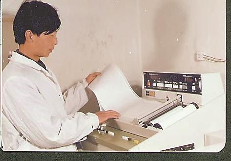 1989年檢驗(yàn)人員操作第一臺大型精密儀器紅外分光光度計。(由自治區(qū)食品藥品檢驗(yàn)研究院供圖)
