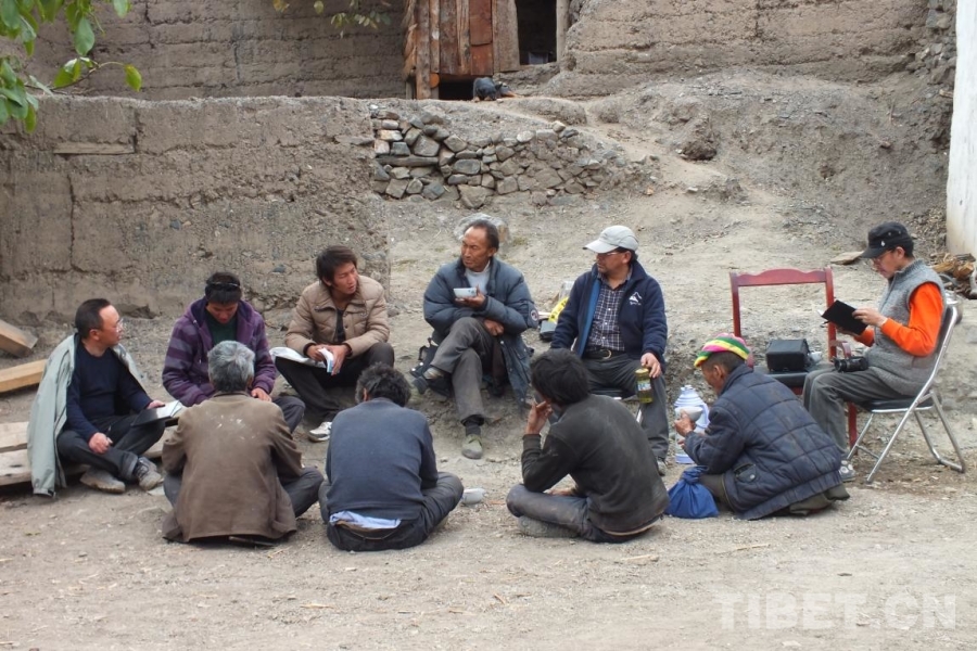 圖為在昌都市葉巴村駐村期間,吉米平階(左一)正在調(diào)研