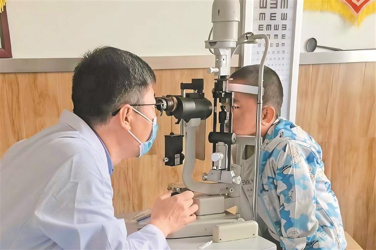 圖為培杰在拉薩市人民醫(yī)院做眼部檢查。記者 汪純 攝