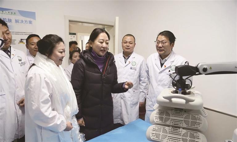隨后,次仁央宗發(fā)表講話,代表市政府和醫(yī)院黨委對(duì)美容皮膚科的正式成立表示祝賀。她提出,要嚴(yán)格診療規(guī)范,把醫(yī)療質(zhì)量放在首位,嚴(yán)守“醫(yī)療為本”底線,嚴(yán)格遵守醫(yī)療核心制度和診療規(guī)范,筑牢醫(yī)療質(zhì)量與安全防線;要聚焦技術(shù)提升,依托醫(yī)院綜合醫(yī)療優(yōu)勢(shì),瞄準(zhǔn)群眾高頻美容護(hù)膚需求,精準(zhǔn)發(fā)力打造特色鮮明、技術(shù)精湛的專科品牌;要強(qiáng)化黨建引領(lǐng),推動(dòng)黨建與業(yè)務(wù)深度融合,在黨建引領(lǐng)下不斷推進(jìn)學(xué)科建設(shè),將科室快速打造成為區(qū)域內(nèi)有影響力、有公信力的特色專科。