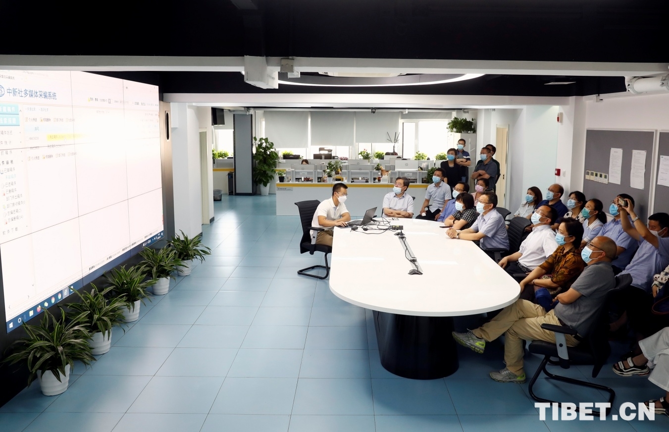 6月12日下午,中國西藏信息中心一行16人在中心主任公保同志的帶領(lǐng)下,前往中新社開展調(diào)研。先后參觀了中新社旗下包括中國新聞網(wǎng)、《中國新聞》報(bào)、《中國新聞周刊》《世界華文傳媒年鑒》及《中國慈善家》五大運(yùn)營實(shí)體,現(xiàn)場觀摩多媒體采編審發(fā)業(yè)務(wù)系統(tǒng)應(yīng)用演示,并實(shí)地查看了值班中心的運(yùn)作情況。