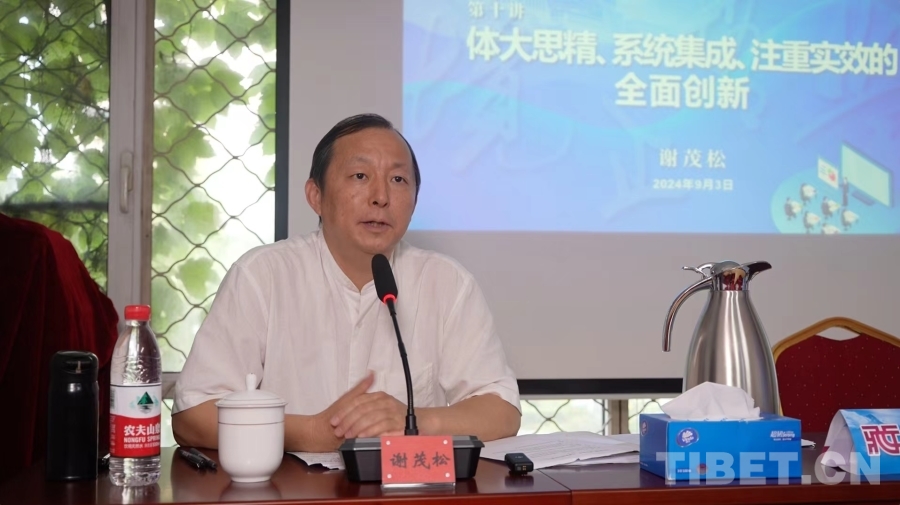 9月3日下午,國(guó)家創(chuàng)新與發(fā)展戰(zhàn)略研究會(huì)資深研究員,中國(guó)文明和中國(guó)道路研究中心主任,清華大學(xué)國(guó)家戰(zhàn)略研究院資深研究員謝茂松應(yīng)邀到中國(guó)西藏信息中心,做客“榮豐大講堂”,以《體大思精、系統(tǒng)集成、注重實(shí)效的全面創(chuàng)制》為題,分享其學(xué)習(xí)黨的二十屆三中全會(huì)精神的體會(huì)和認(rèn)識(shí)。