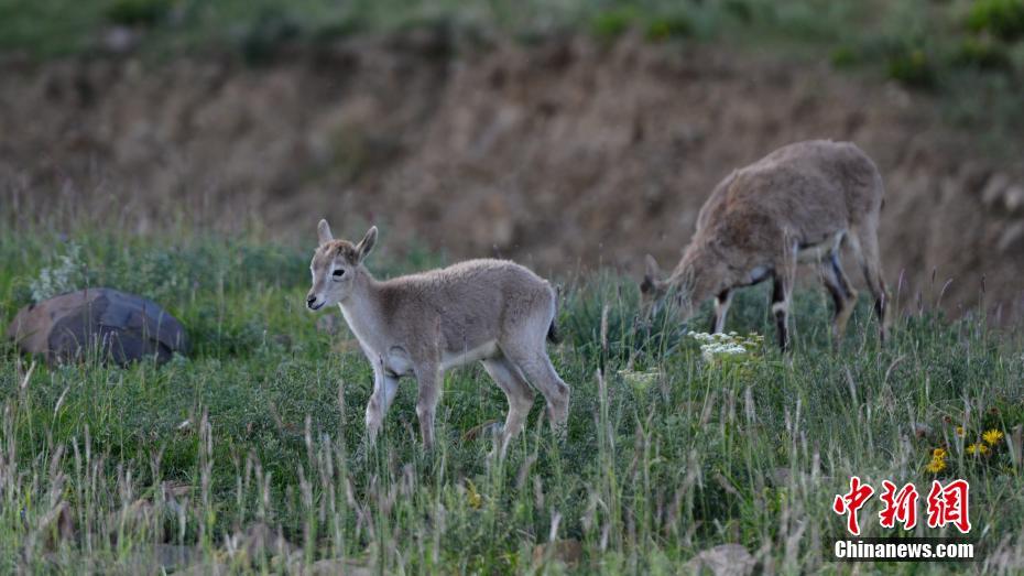 9月2日,西藏山南羊卓雍錯湖畔,一只小藏原羚和同伴一起出來覓食。西藏近年來不斷加大環(huán)保力度,當(dāng)?shù)丨h(huán)境日益趨好,野生動物種群逐漸恢復(fù)。中新社記者 江飛波 攝