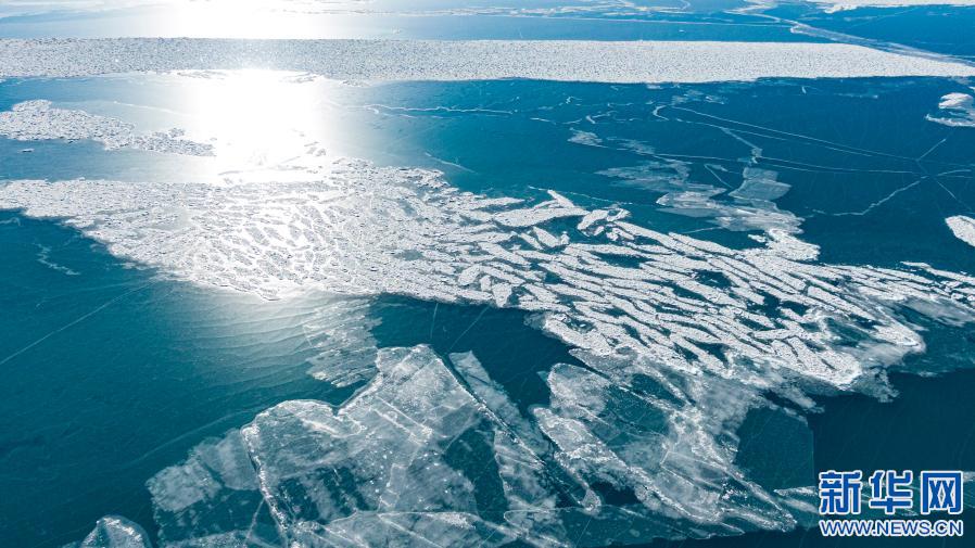湖面結(jié)冰的納木錯(cuò)(1月29日攝,無人機(jī)照片)。新華社記者 晉美多吉 攝