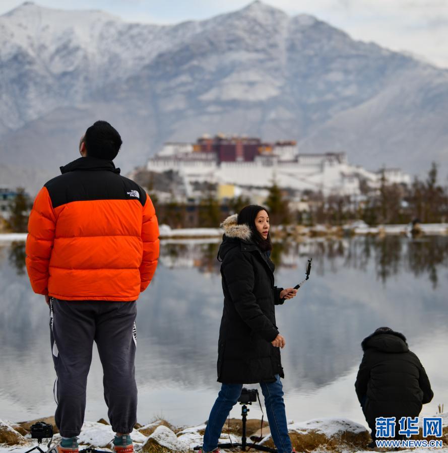 2月11日,幾名攝影愛好者在拉薩南山公園拍攝雪景。新華社記者 晉美多吉 攝