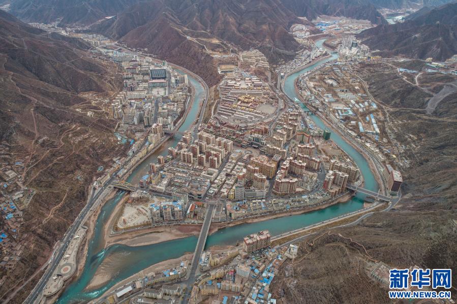 這是2月17日拍攝的西藏昌都市(無人機照片)。扎曲河、昂曲河在此匯流成瀾滄江。新華社記者 孫非 攝