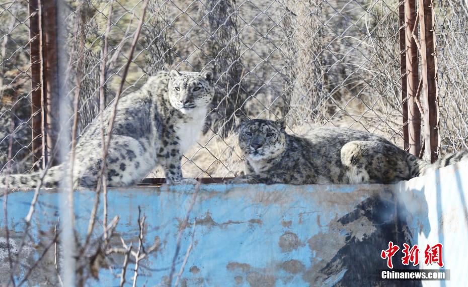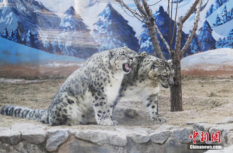 3月13日,青藏高原野生動物園雪豹館內(nèi),“傲雪”(左)陪伴21歲的“大豹”(右)享受春日暖陽。副園長齊新章介紹,為了雪豹的身心健康,2017年,動物園嘗試以科學、理性的技術(shù)將年幼的雌性“傲雪”和年老的雄性“大豹”合籠飼養(yǎng),發(fā)現(xiàn)“大豹”在“傲雪”的陪伴和帶動下,活動量明顯增加。據(jù)悉,2000年出生的“大豹”今年已21歲(相當于人類105歲),突破雪豹的壽命極限值,且身體各項指標穩(wěn)定。中新社記者 馬銘言 攝
