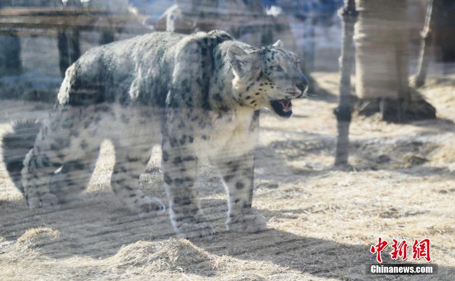 3月13日,青藏高原野生動物園雪豹館內(nèi),21歲的“大豹”正在散步。中新社記者 馬銘言 攝