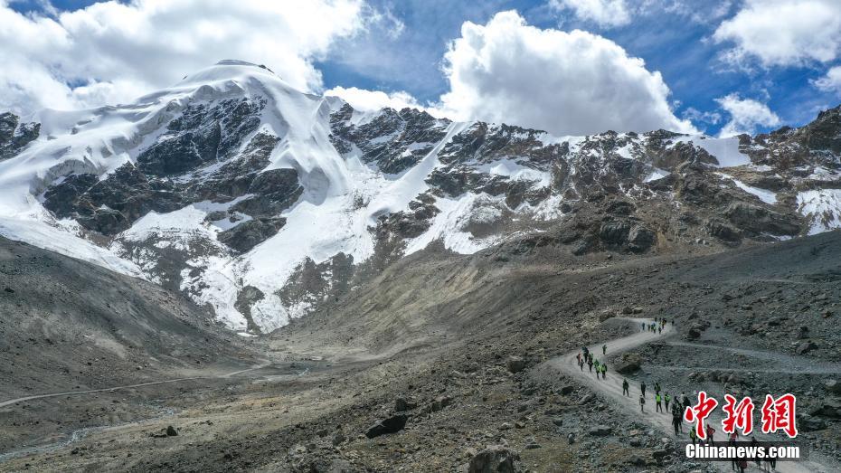 西藏拉薩河谷1號(hào)冰川(廓瓊崗日冰川)景區(qū)將與2021年4月正式全面開放,洛堆峰雪山攀登項(xiàng)目也將正式啟動(dòng)。資料圖為登山愛好者攀登洛堆峰。(無人機(jī)拍攝)中新社發(fā) 貢嘎來松 攝