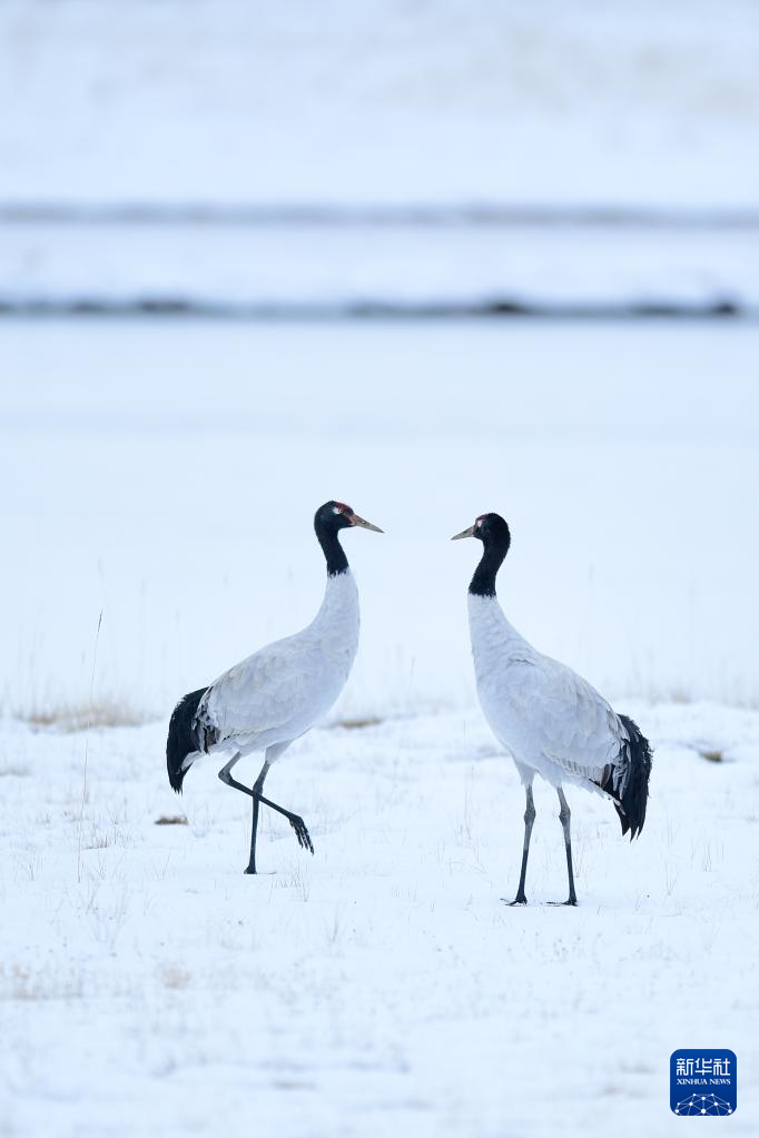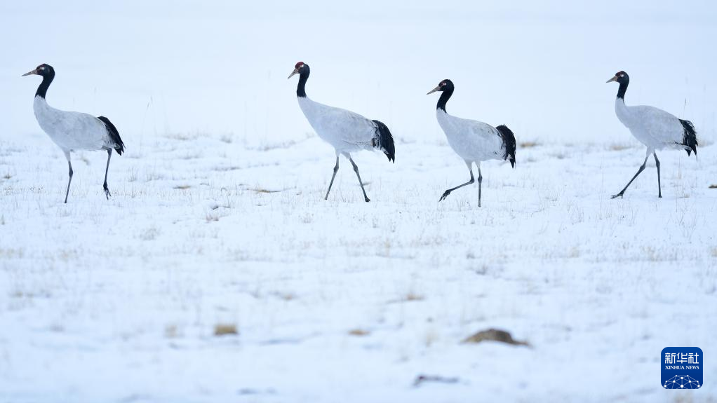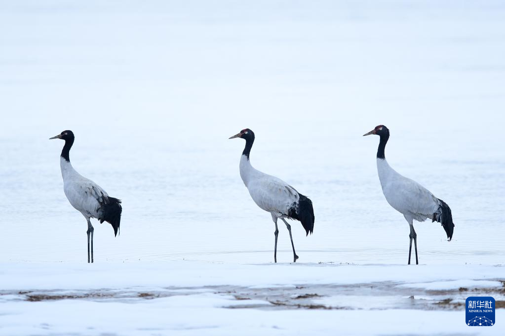 10月21日在三江源國家公園黃河源園區(qū)內(nèi)拍攝的黑頸鶴。新華社記者 張龍 攝
