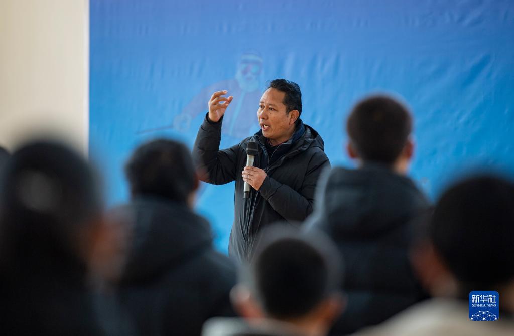 12月30日,西藏自治區(qū)體育局局長尼瑪次仁在國家體育總局“大心臟計劃”西藏自治區(qū)訓練營開營儀式現場,向學員們介紹訓練營情況。新華社記者 孫非 攝