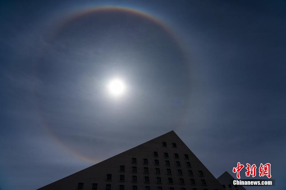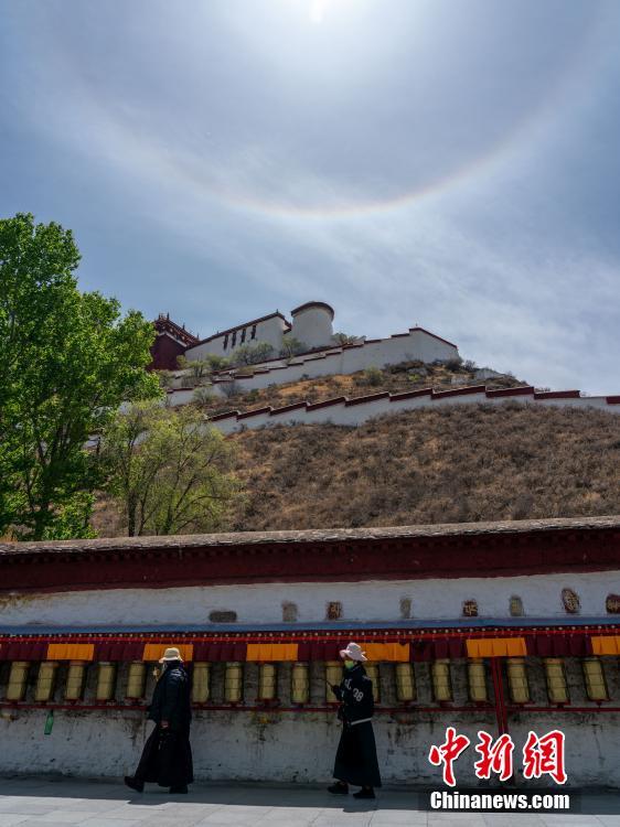 4月20日,西藏拉薩天空中出現(xiàn)日暈。中新社記者 江飛波 攝