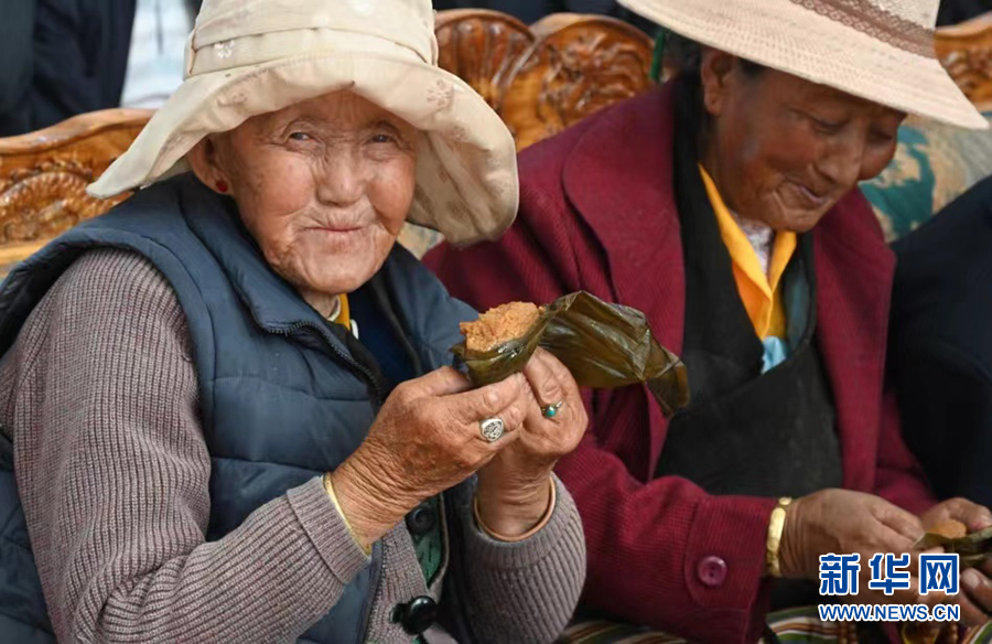 6月3日,西藏山南市集中供養(yǎng)服務(wù)中心的老人們開心地領(lǐng)到千里送來的粽子。新華網(wǎng) 王雷 攝