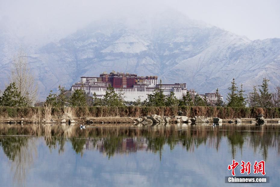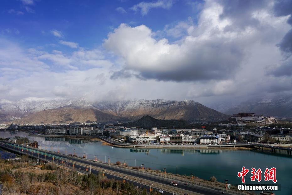 2月26日至27日,海拔3600多米的高原古城拉薩再次迎來降雪天氣,拉薩河兩岸延綿的山體猶如披上了一層白紗,一派高原特色城市風(fēng)光,景色秀麗。布達拉宮觀景臺、拉薩南山公園等地吸引了不少旅游攝影愛好者“打卡”古城雪景。圖為春雪過后的拉薩。
