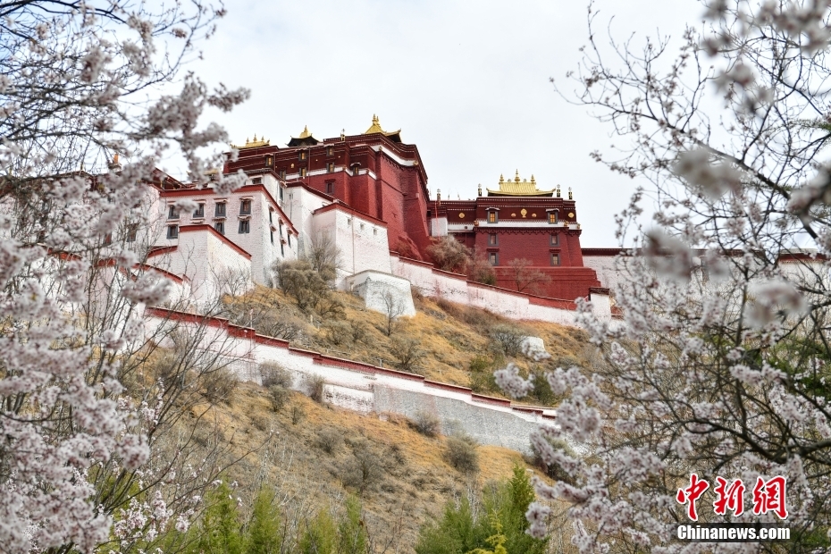 西藏拉薩:花間迎飛雪 春景美如畫