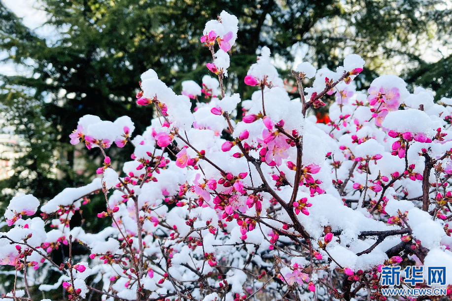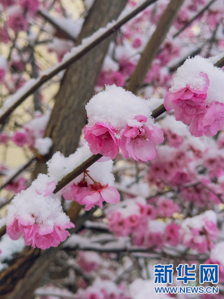 覆雪的花(3月30日攝)。新華網(wǎng) 柑丹鴦琦攝