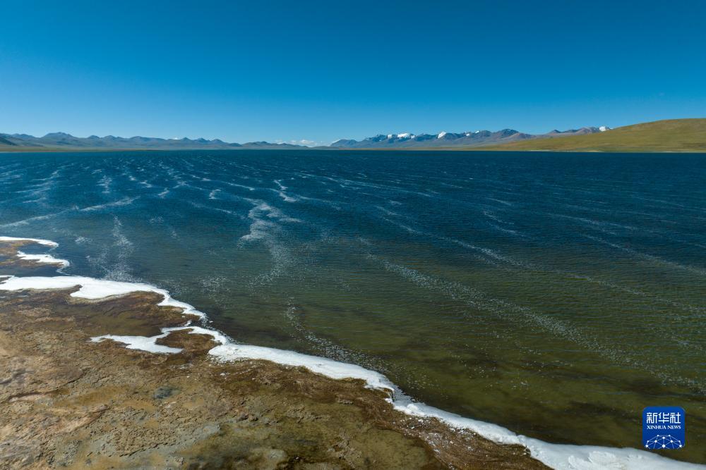 飛鳥(niǎo)從打加錯(cuò)湖面掠過(guò)(無(wú)人機(jī)照片,8月30日攝)。新華社發(fā)(旦增努布 攝)