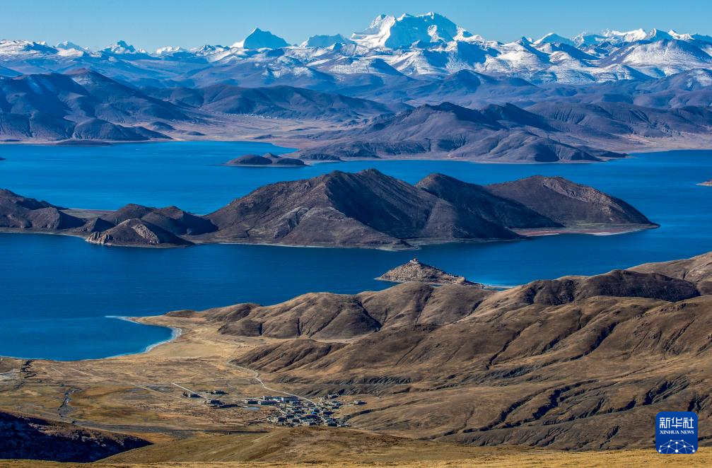 這是10月25日拍攝的羊卓雍錯(cuò)和日托寺。新華社記者 姜帆 攝