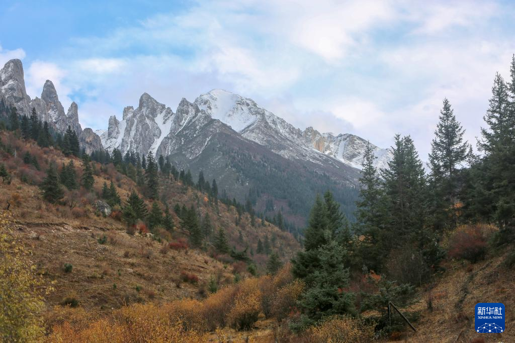 游客在薩普雪山腳下拍照留念(10月28日攝)。新華社記者 孫非 攝