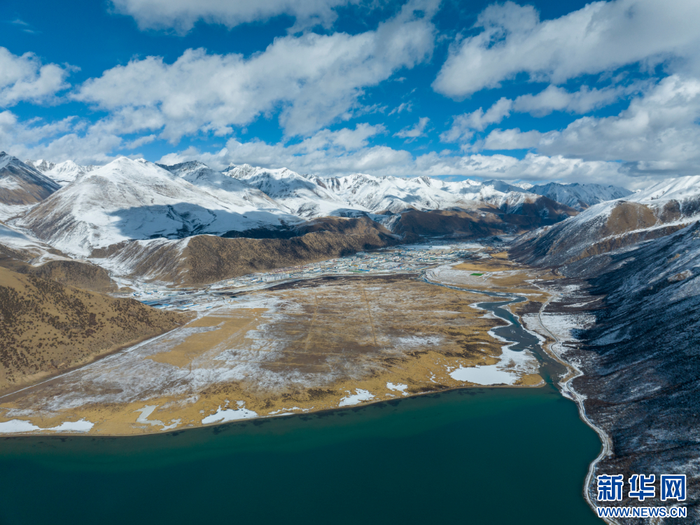 12月10日拍攝的嘉乃玉錯(cuò)湖邊(無人機(jī)照片)。新華網(wǎng) 旦增努布 攝