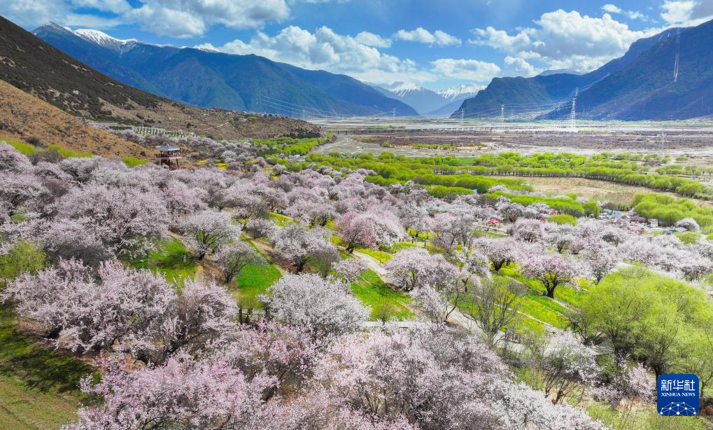 這是林芝市波密縣傾多鎮(zhèn)的桃林(4月2日攝,無人機照片)。新華社記者 丁汀 攝