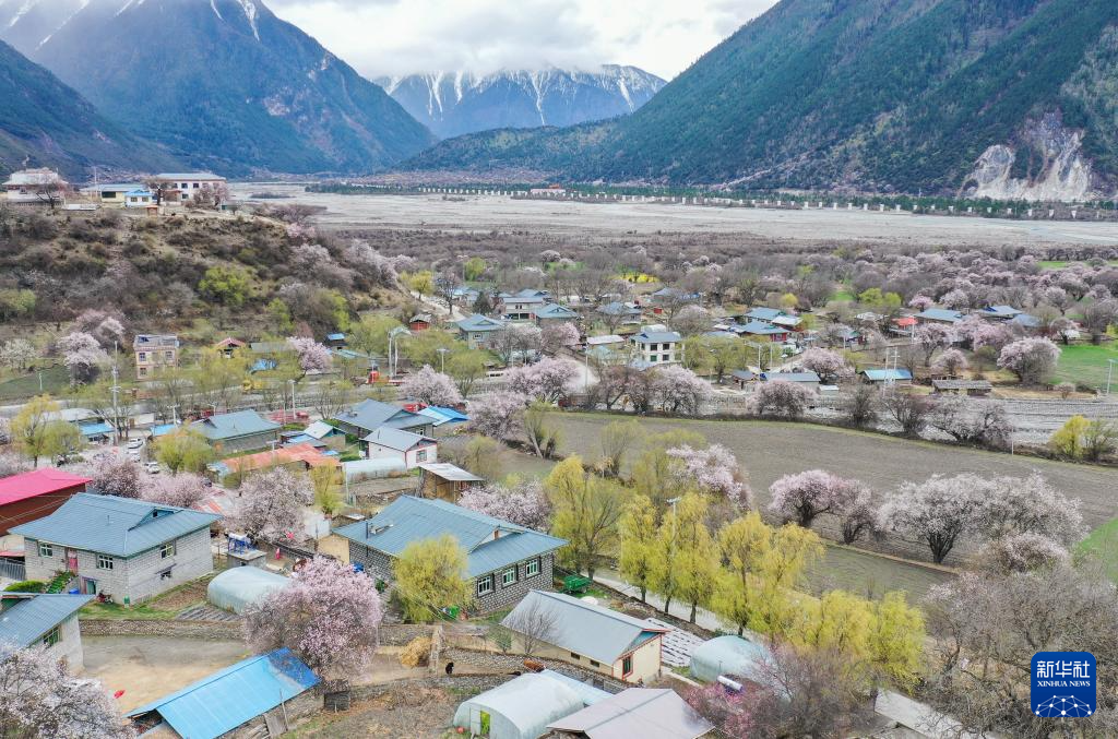 這是在林芝市巴宜區(qū)嘎拉村拍攝的桃花(4月1日攝,無人機照片)。新華社記者 丁增尼達 攝