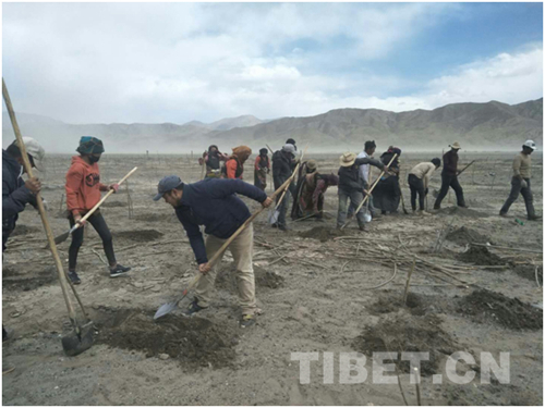 中國西藏網(wǎng)訊 仲春初四日,春色正中分。春天的拉薩河谷,萬物復(fù)蘇。在全民義務(wù)植樹的三月時節(jié),拉孜縣扎西崗鄉(xiāng)吉榮村路旁的沙地上,吉榮村駐村工作隊正在組織村民進(jìn)行義務(wù)植樹,轟鳴的機器聲和歡快的勞動號子,驚醒了農(nóng)田里前來越冬的各類候鳥。
