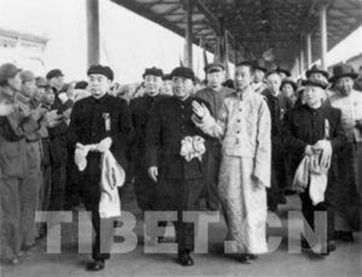 1951年4月27日,十世班禪首次進(jìn)京,周恩來總理、朱德總司令等黨和國(guó)家領(lǐng)導(dǎo)人前往車站迎接。