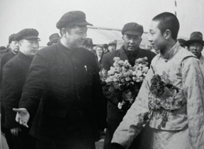 1951年4月中旬,習(xí)仲勛與十世班禪第一次會面。那時(shí),十世班禪率領(lǐng)班禪堪布會議廳官員赴京途經(jīng)西安,習(xí)仲勛作為西北局和西北軍政委員會主要負(fù)責(zé)人,到機(jī)場迎接。班禪走下飛機(jī)時(shí),一個(gè)眉清目秀、和善聰慧、舉止文雅、彬彬有禮的英俊藏族少年活佛形象,出現(xiàn)在習(xí)仲勛的眼前。在飛機(jī)舷梯下,十世班禪緊緊握住習(xí)仲勛的手,心情激動(dòng)地說:“我們是專程去北京向毛主席致敬的!我要把藏族人民對中央人民政府和毛主席的良好祝愿親口轉(zhuǎn)達(dá)給毛主席?!痹诋?dāng)晚歡迎會上,十世班禪表示堅(jiān)決擁護(hù)中央人民政府,決心與西藏各界愛國人士一道為西藏的解放和藏族人民的團(tuán)結(jié)努力奮斗?!坝兄静辉谀旮摺保腊喽U的愛國熱情和坦誠豪爽的性格給習(xí)仲勛留下了深刻的印象。當(dāng)天,習(xí)仲勛把他接到西北局大院自己家中,十世班禪與習(xí)仲勛的大兒子習(xí)富平同齡,兩人很快就熟稔起來。
