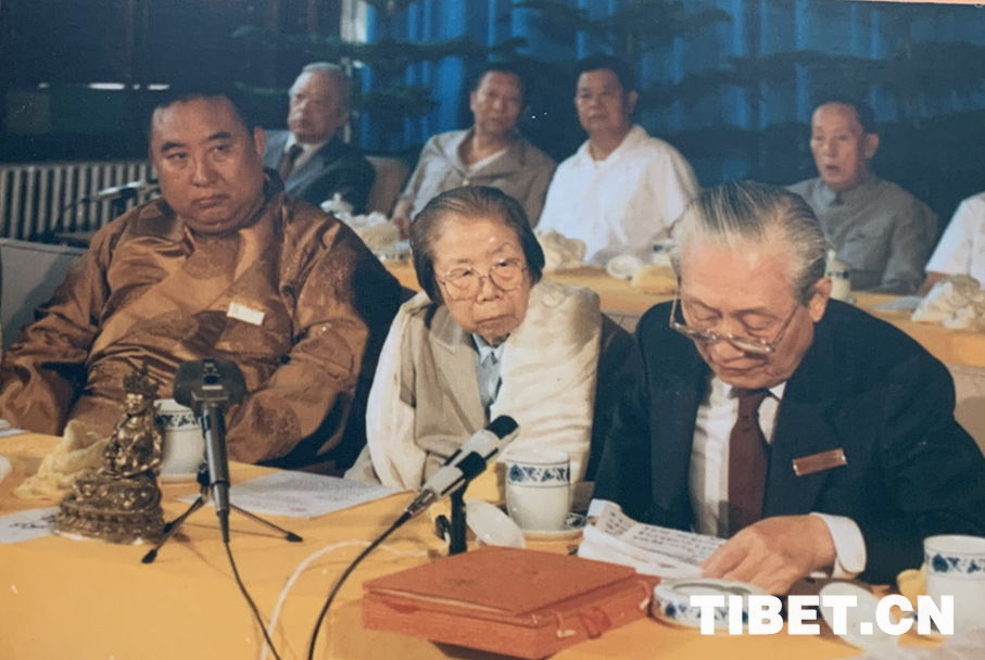 圖為1987年,十世班禪和趙樸初在中國藏語系高級佛學院成立儀式新聞發(fā)布會上接受媒體采訪。